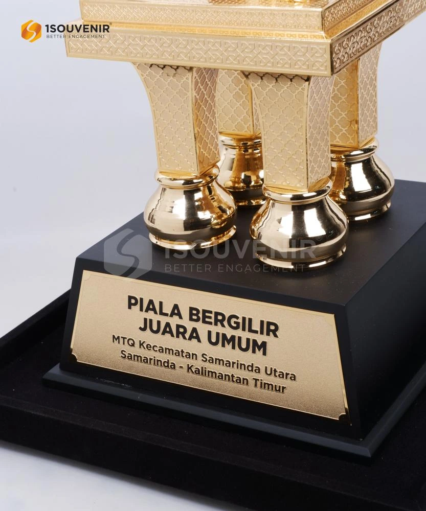 Piala MTQ Samarinda Utara ini menjadi hadiah kemenangan yang begitu prestisius. Desain bernuansa Islam dengan bahan logam kokoh menjadikannya sebagai piala bergilir yang penuh dengan makna sehingga lebih berkesan saat diberikan.