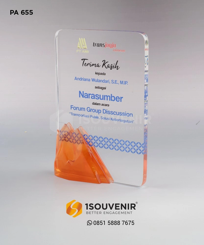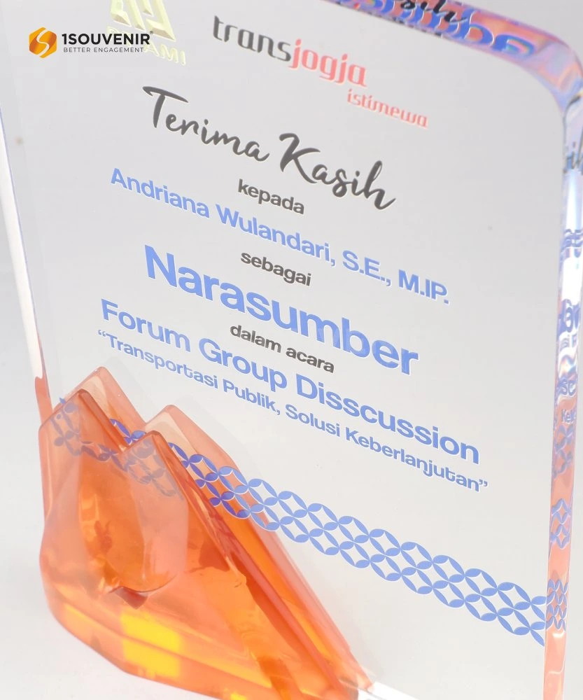 Plakat akrilik memanglah pilihan yang tepat untuk diberikan kepada narasumber. Persiapkan kebutuhan souvenir untuk narasumber bersama 1Souvenir untuk hasil yang lebih berkesan.