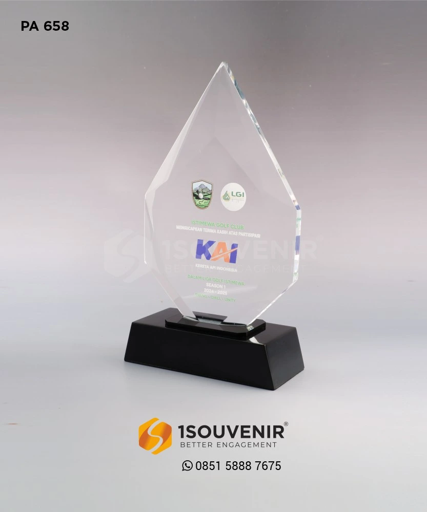 Sebagai wujud ucapan terima kasih, plakat Istimewa Golf Club diberikan sebagai souvenir simbolik. Dirancang khusus dengan bahan akrilik, plakat pun menjadi kenang-kenangan yang menarik dan penuh kesan mendalam.