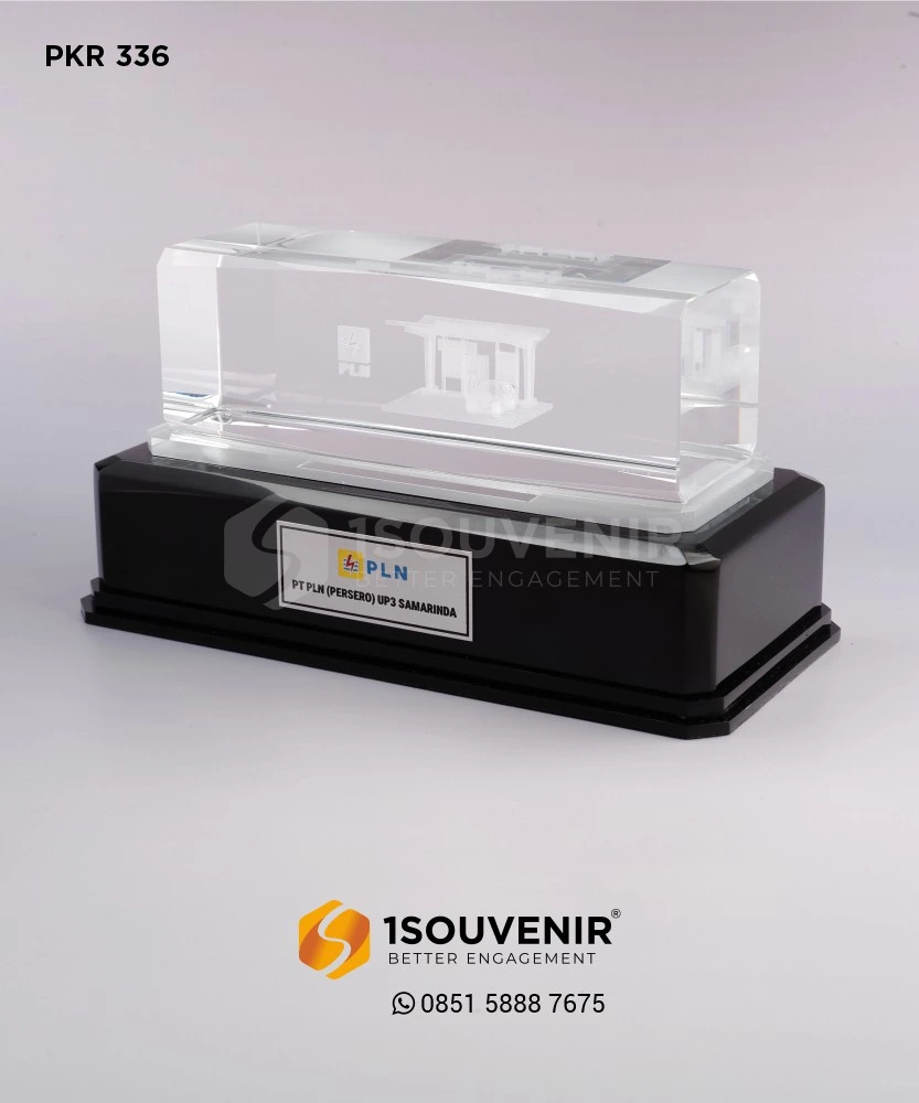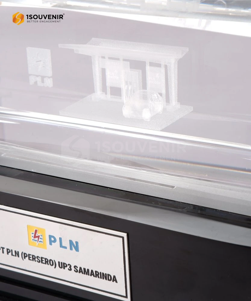 Plakat SPKLU UP3 Samarinda dirancang khusus dengan teknik tiga dimensi sehingga menjadikannya cendera mata yang berkesan. Plakat kristal ini menjadi kenang-kenangan yang penuh elegansi dan bernilai prestise untuk diberikan kepada relasi.