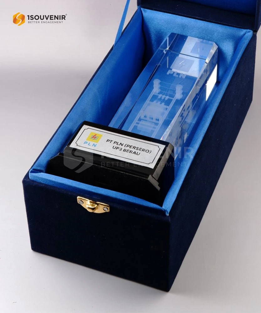 Plakat Trafo PLN UP3 Berau dibuat secara khusus dari bahan kristal dengan teknik tiga dimensi. Hal ini menjadikannya sebagai kenang-kenangan yang menarik sekaligus berkesan berkat desain yang modern dan berkelas.