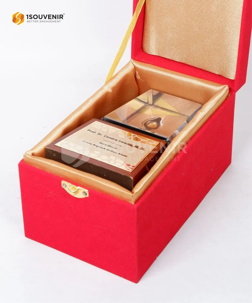 Dari situlah, secara khusus Plakat Guru Besar Kimia Organik Bahan Alam diberikan sebagai bentuk apresiasi. Bahan resin yang didesain khas dengan elemen minyak di dalamnya menjadikan plakat tampak menarik dan sarat akan makna.