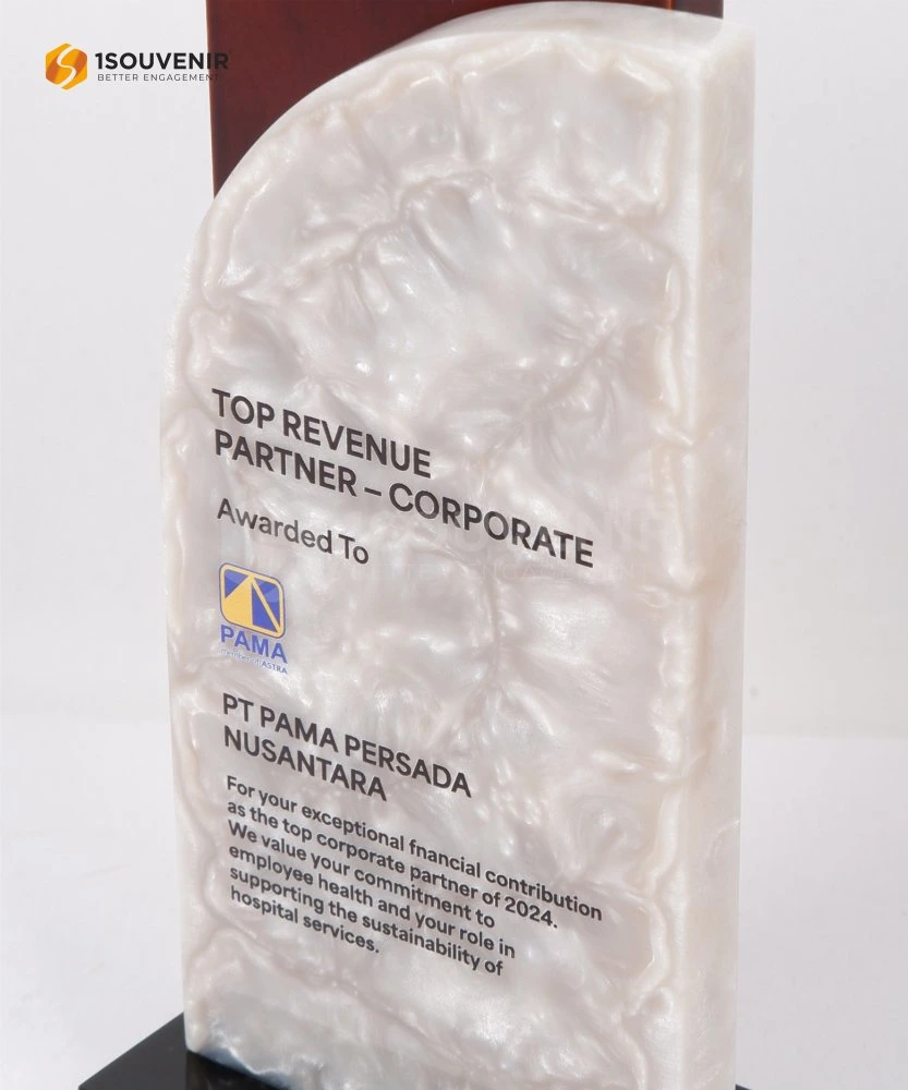 Plakat RS Dr. Oen Solo Baru dirancang khusus sebagai bentuk penghargaan bagi mitra terbaik. Mengusung material resin dengan tampilan elegan serta perpaduan warna dan tekstur yang khas, plakat ini mencerminkan apresiasi yang prestisius dan profesional.